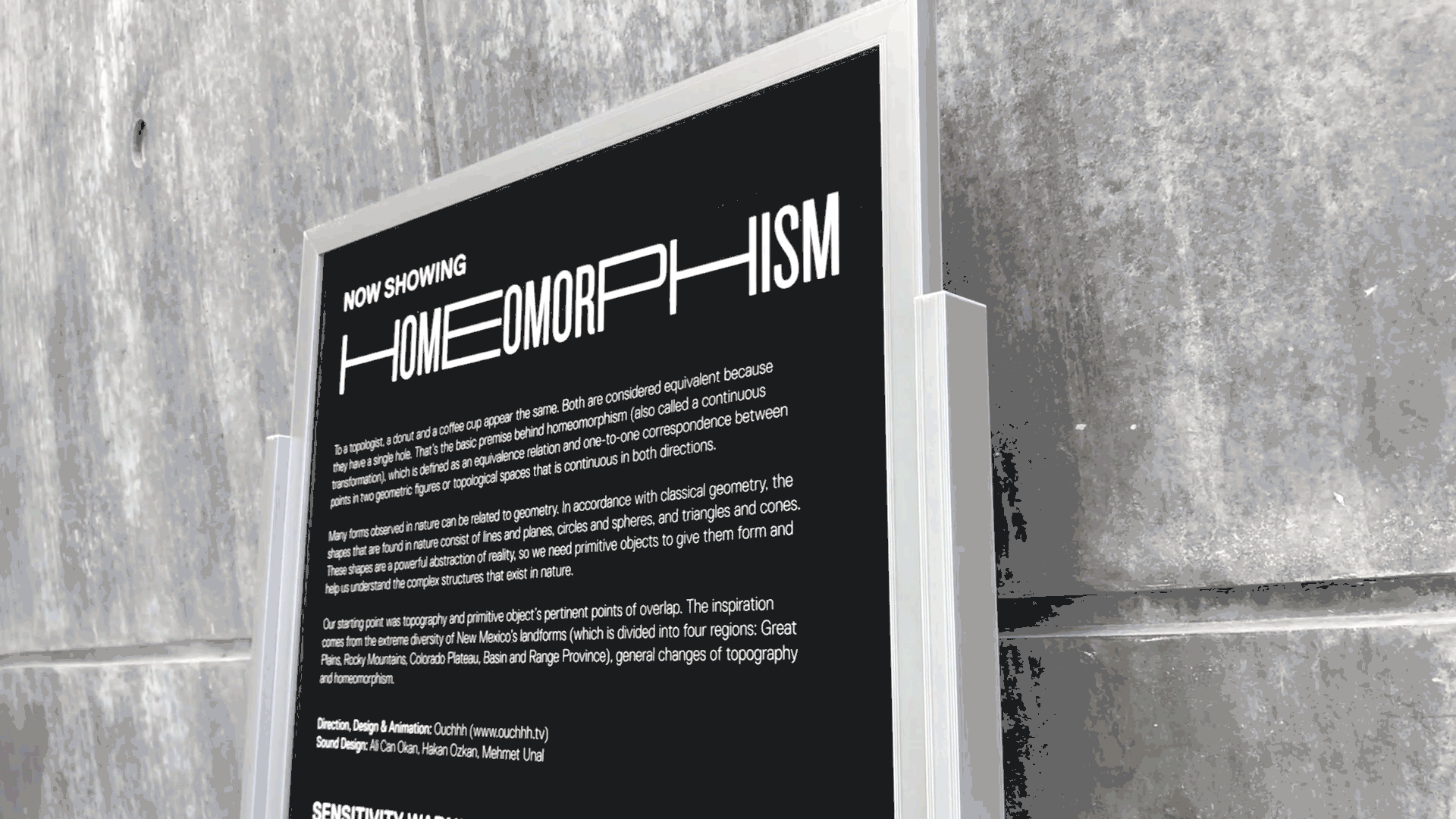 The universe is based on an algorithm. All living and non-living creatures live in the algorithmic habit of the universe harmonizingly. Ouchhh has a general interest for the geometrical and mathematical forms in architectural structures. When Ouchhh and GrandSon looked at an algorithm, which is defined as the necessary phase to solve out a problem, and the algorithmic thought parameters, they observed order and harmony which is hidden in parametric and non-parametric architectural concept. Ouchhh and GrandSon will convey the harmony of non-parametric architectural canvas and the complex organic structure of parametric architecture to the audience by the use of primitive objects through abstract visuals. Ouchhh and GrandSon's aim is to tear the building's facade from its current form and will transform it into parametric architecture. In so doing Ouchhh and GrandSon will draw from the theory that all of the universes is based on an algorithm through which all animate and inanimate beings exist in harmony.