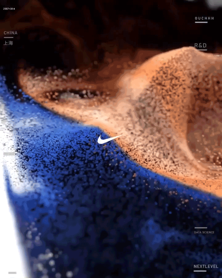 In collaboration with Nike China, Ouchhh created an installation integrating data and entertainment to celebrate the first year of Nike China's collaboration with the League of Legends in Mercedes Benz Arena Shanghai
