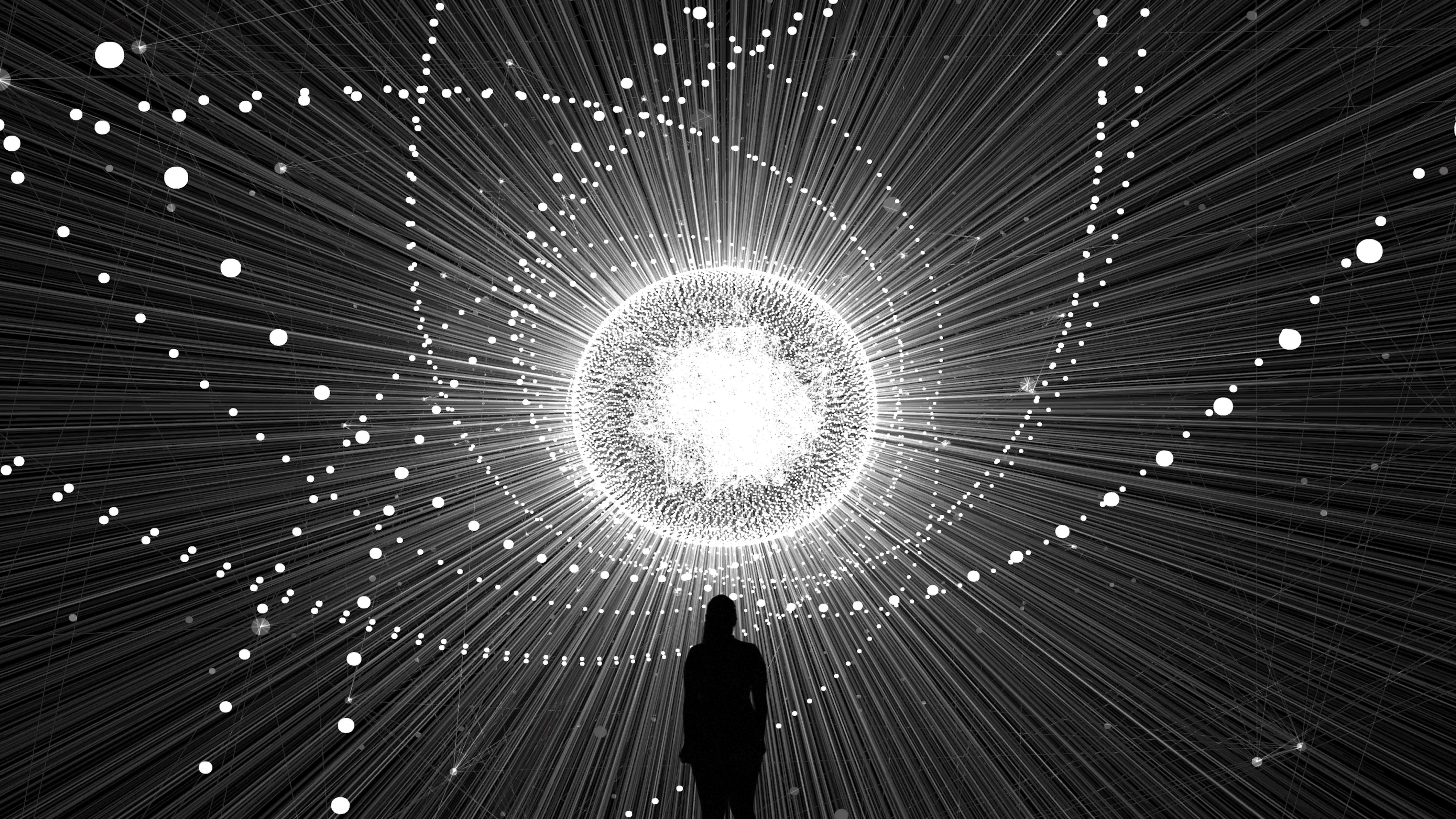 _Atelier des Lumières in Paris for 6 months! 50K pixel, 136 projectorsBy using machine learning and AI algorithms, we created scientific conscious Poetic Refraction of AI reality which learns from millions of lines of theory, articles and books about light, physics, space-time that is written by scientists who change the destiny of the world and write history.
